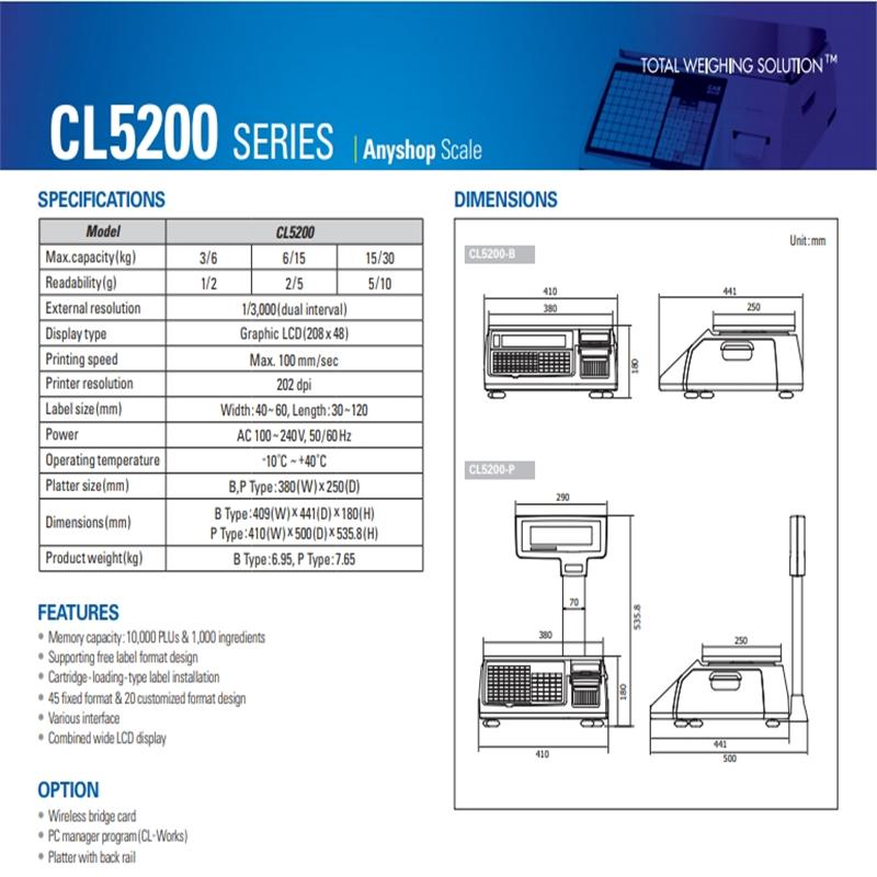 Cân in tem nhãn CAS CL 5200