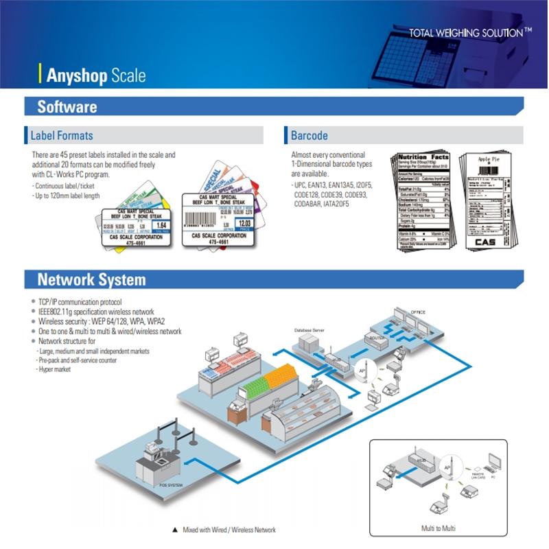 Khả năng kết nối bằng cổng Lan thì việc quản lý cân CAS5200 không còn là phức tạp với các nhân viên IT hay quản lý siêu thị. Cân CAS 5200 có phần mêm riêng biệt, chuyên dụng dành cho cân.