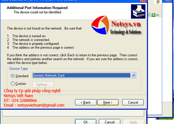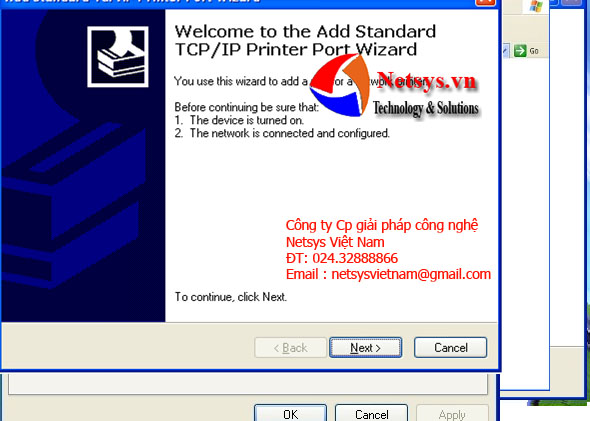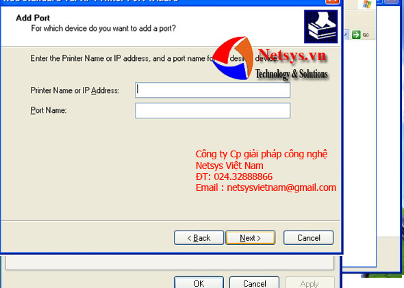 Gõ địa chỉ “192.168.1..87” vào mục “Printer Name or IP Address”. Nhấn “Next”