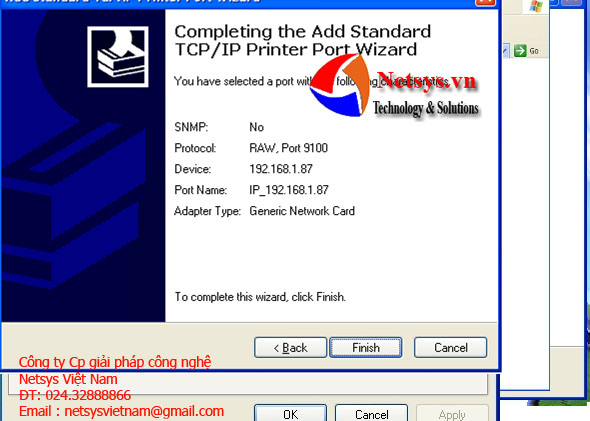 Nhấn “Finish”. TCP/IP Cổng truyền thông tiêu chuẩn được thêm vào hoàn toàn