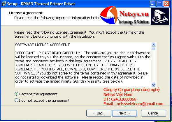 Chọn “I accept the agreement”, chọn “Next”