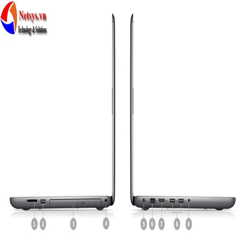 1. Khe cắm thẻ nhớ SD | 2.USB 2.0 cổng | 3.DVD ổ | 4.Noble khóa | 5.AC điện | 6. Mạng Ethernet 10/100 RJ-45 | 7.HDMI | Cổng 8.USB 3.0 (x2) | 9.Combo Jack (Tai nghe / Mic)