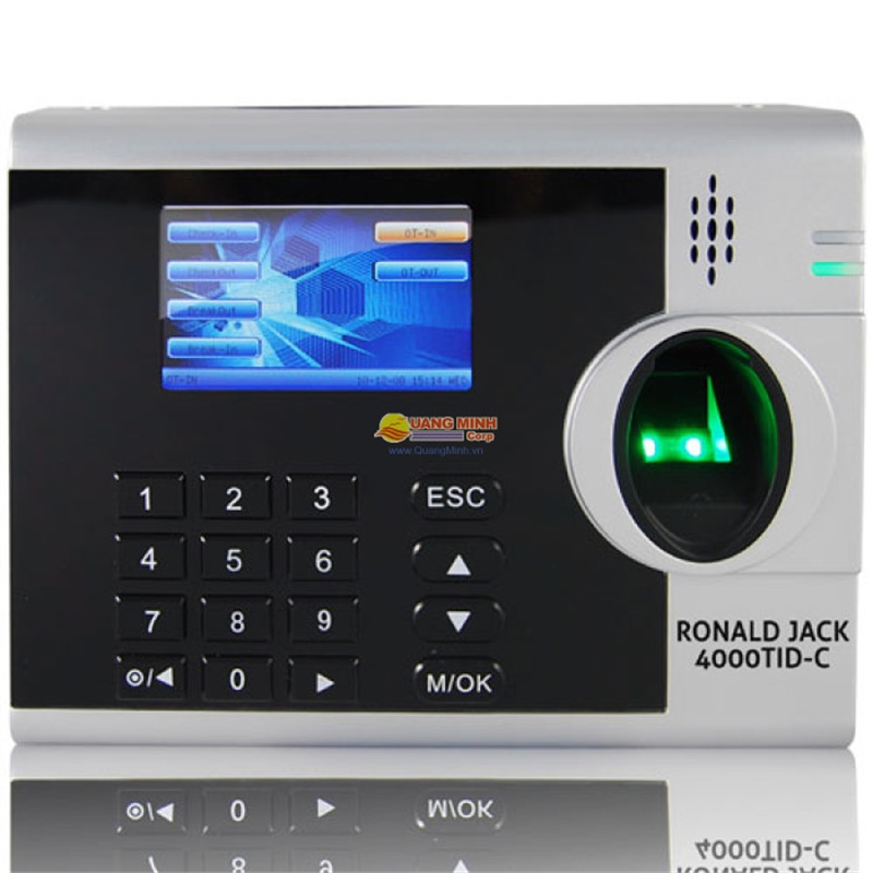 Máy chấm công Ronald Jack 4000TID-C quản lý dung lượng lên đến 4000 dấu vân tay,kết hợp cả chấm công bằng thẻ cảm ứng và vân tay. Chấm công nhanh chóng, đầu đọc vân tay chính xác, mỗi người có thể lấy tối đa 10 dấu vân tay, giao diện tiếng Việt, dễ dàng sử dụng. Máy sử dụng phần mềm chấm công bằng tiếng Việt, giúp cho người quản lý dễ dàng thực hiện chấm công cho nhân viên, phần mềm cho phép xuất báo cáo băng dạng file excel theo nhiều mẫu khác nhau.