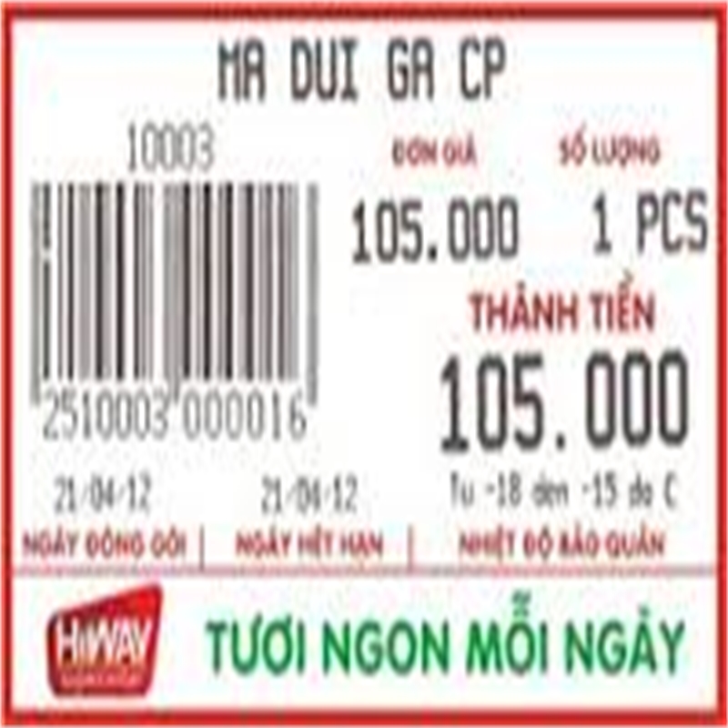 Tem sử dụng giấy nhiệt nhập ngoại Fasson, sử dụng cho các loại cân điện tử mã vạch, in truyền nhiệt trực tiếp lên tem nhãn để in nội dung, không dung ruy băng mực bởi vì trên bề mặt tem đã có sẵn một lớp chất liệu đặc biệt, khi có tác dụng của nhiệt sẽ chuyển thành màu đen.