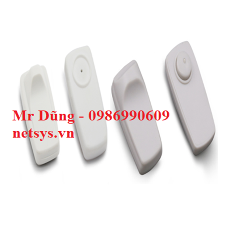 Tem từ cứng công nghệ RF 8.2 MHz, kích thước 51 x 25mm là loại chíp từ an ninh gắn quần áo để chống trộm đồ, có đinh ghim đính kèm